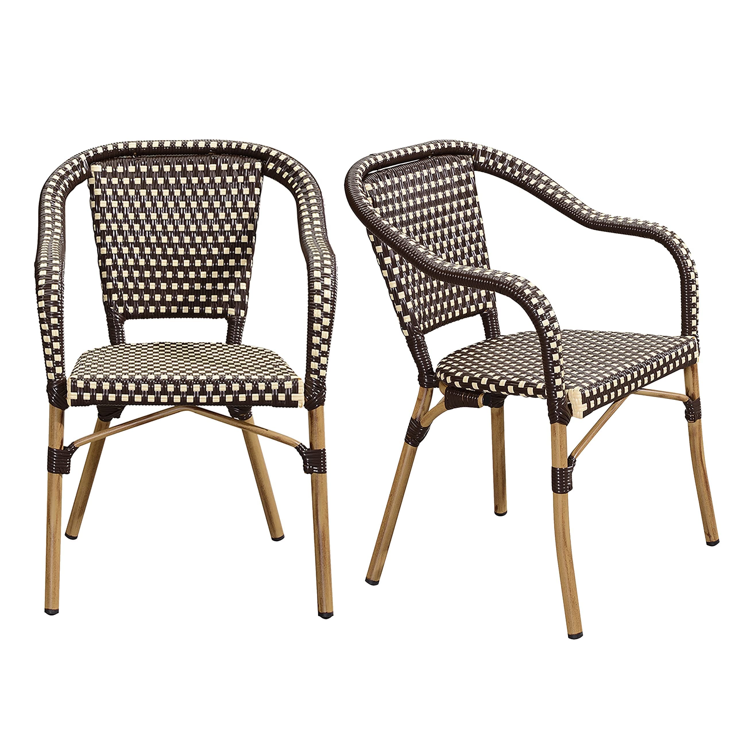 Amazon Com Purple Leaf Bistro Chair Set Of 2 French Hand Woven Wicker Armchairs For Outdoor Patio Porch Garden Indoor Bamboo Print Finish Coffee Dining Chairs Patio Lawn Garden